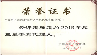 2017年1月代理人牛愛周被評為“2016年度三星專利代理人”。