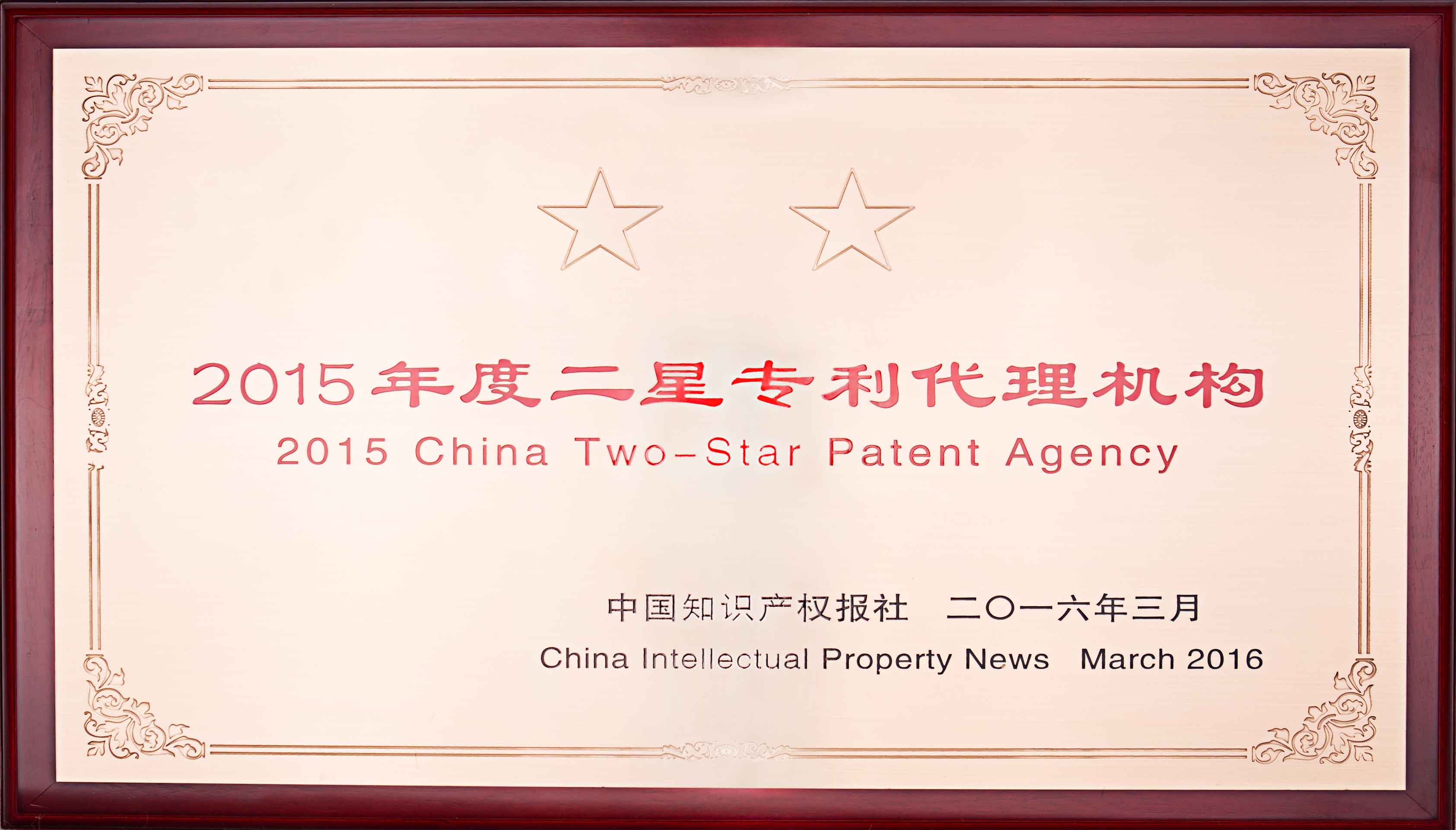 2016年3月公司被評為“2015年度二星專利代理機構(gòu)”。