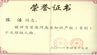 2011年4月公司資深代理人先后當選首屆“河南省知識產(chǎn)權(quán)(專利)十大維權(quán)人物”、河南省第一批知識產(chǎn)權(quán)高層次人才。 -