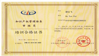 2015年2015年公司代理人獲得知識產(chǎn)權(quán)管理體系兼職審核員資格。