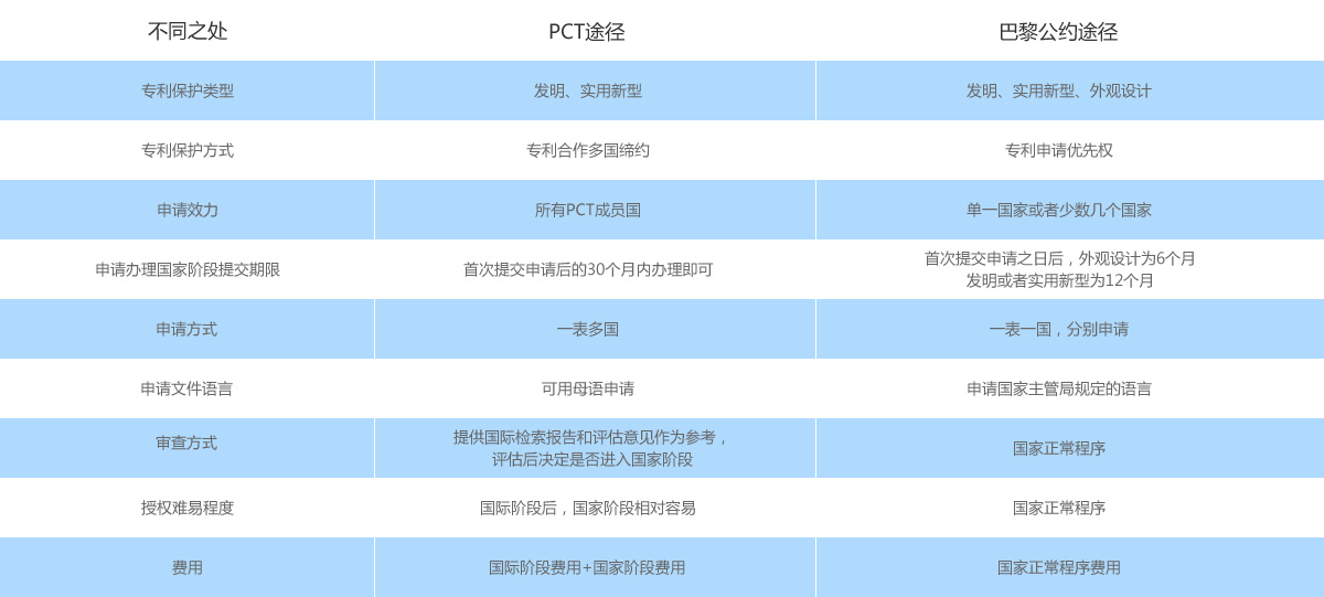 與PCT途徑向外申請的不同如果申請人僅需向一個(gè)國家或者少數(shù)幾個(gè)國家申請專利時(shí),可以考慮通過巴黎公約途徑向國外申請專利。