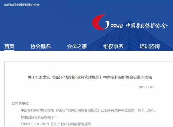 中國專利保護協(xié)會標準《知識產權糾紛調解管理規(guī)范》已起草完成并審查通過,現(xiàn)予以發(fā)布。